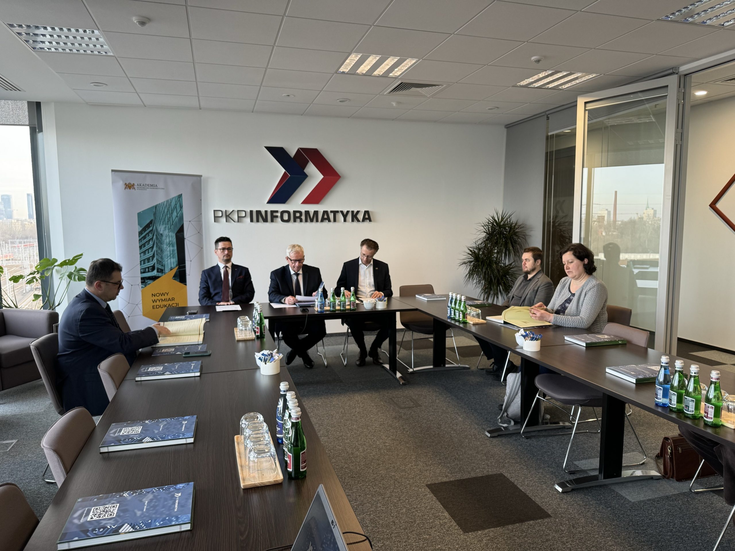 Mamy wielką przyjemność zakomunikować, iż w dniu 22 lutego nasza uczelnia rozpoczęła współpracę z „PKP Informatyka” spółka z o.o., należącą do Grupy PKP. Sygnatariuszami podpisanego w siedzibie PKP Informatyka porozumienia byli ze strony uczelni JM Rektor dr hab. Konrad Janowski prof. AEH zaś ze strony PKP Informatyka Prezes Zarządu Tadeusz Turzyński oraz Członek Zarządu Łukasz Strzelecki. W uroczystości brali też udział: Dziekani Wydziałów Technologii Informatycznych dr Jerzy Królikowski i mgr Piotr Michalski oraz Nauk Społecznych dr hab. Tomasz Kownacki prof. AEH wraz z pełnomocnikiem kierunków Bezpieczeństwa wewnętrznego, Cyberbezpieczeństwa, Kryminalistyki i kryminologii dr Tomaszem Wierzchowskim oraz zaproszeni Studenci Koła Naukowego Bezpieczeństwa i Nauk Sądowych.